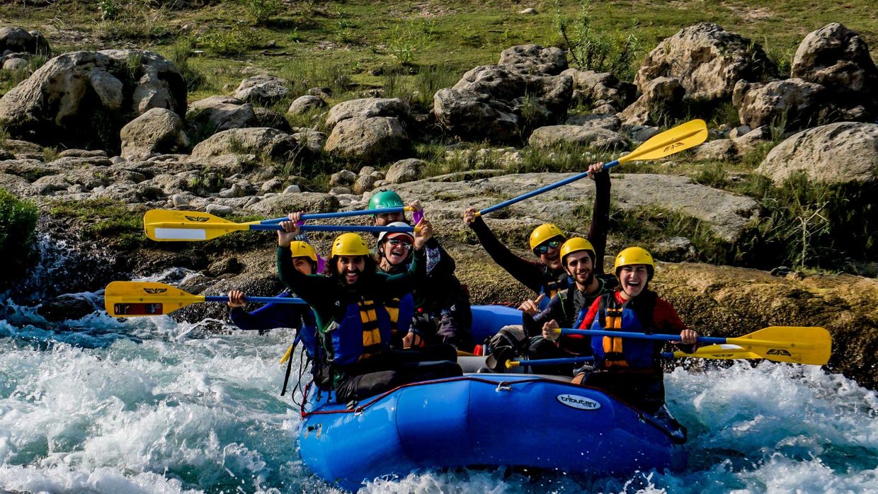Siente la fuerza del agua chocar contra la balsa mientras te impulsas hacia adelante, esquivando rocas y disfrutando de la emoción del descenso.